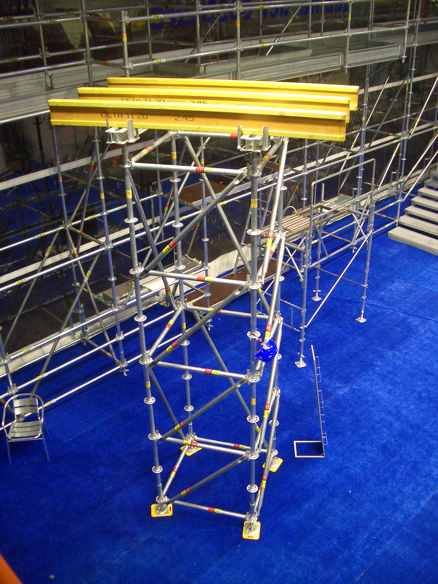 Ponteggio multidirezionale con: alberi di testa, travi in legno e correnti UPN = sostegni di grandi portate ad altezze elevate. Le dimensioni delle torri possono variare in base alle esigenze del cantiere e delle portate. Per maggiori info e dettagli https://www.ceta.it/prodotti/linea-ponteggi/cat-shoring-torre-sostegno
